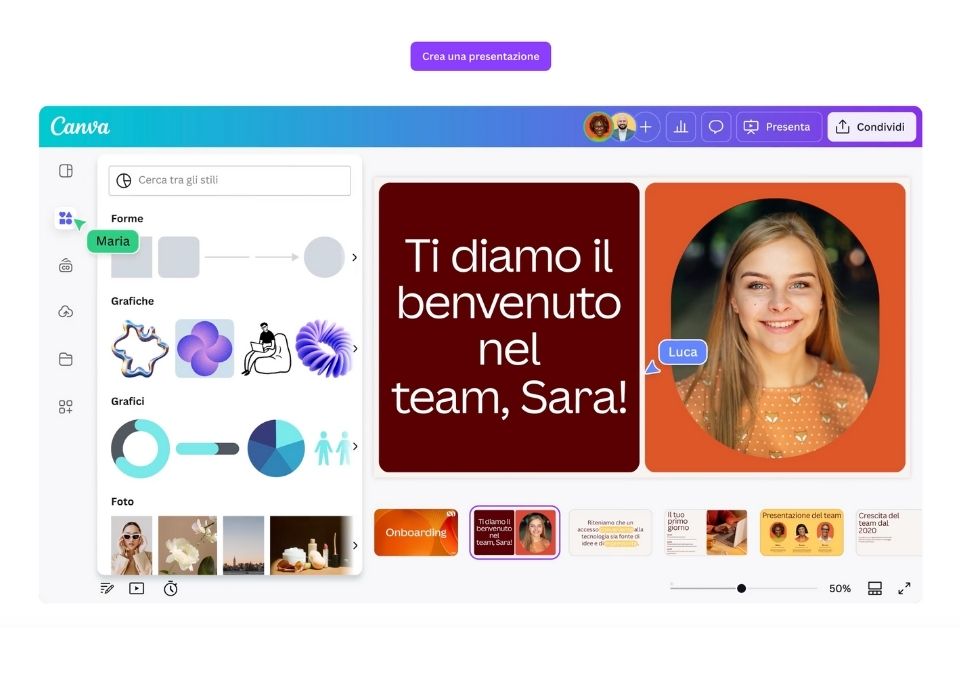 Con Canva è possibile creare presentazioni:
